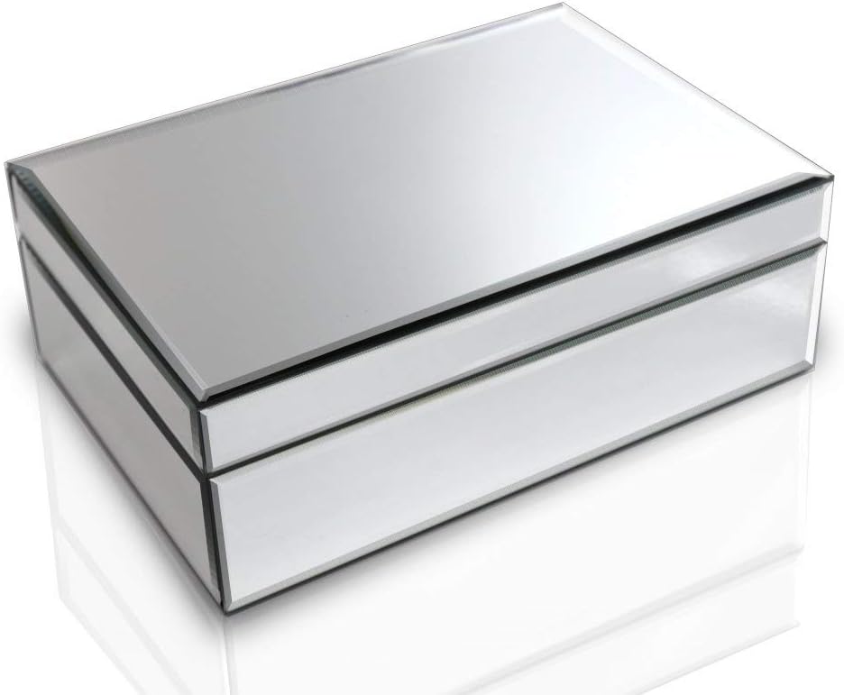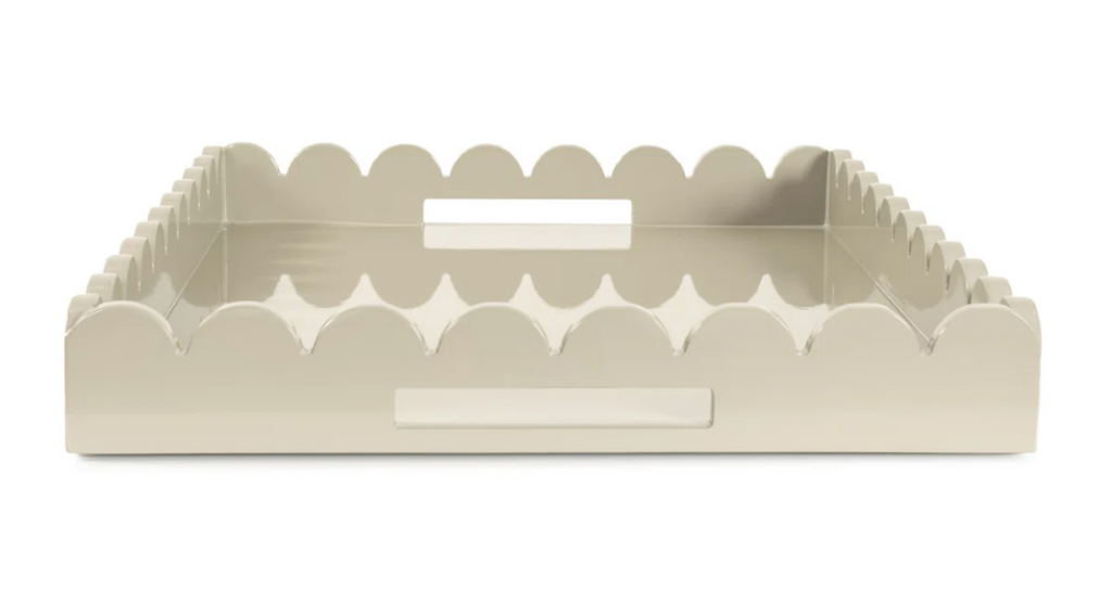 A lacquered tray or mirrored box provide the sheen and reflection required to bring in some “Hollywood.” Here are two of my favorite picks to bring in some shine.