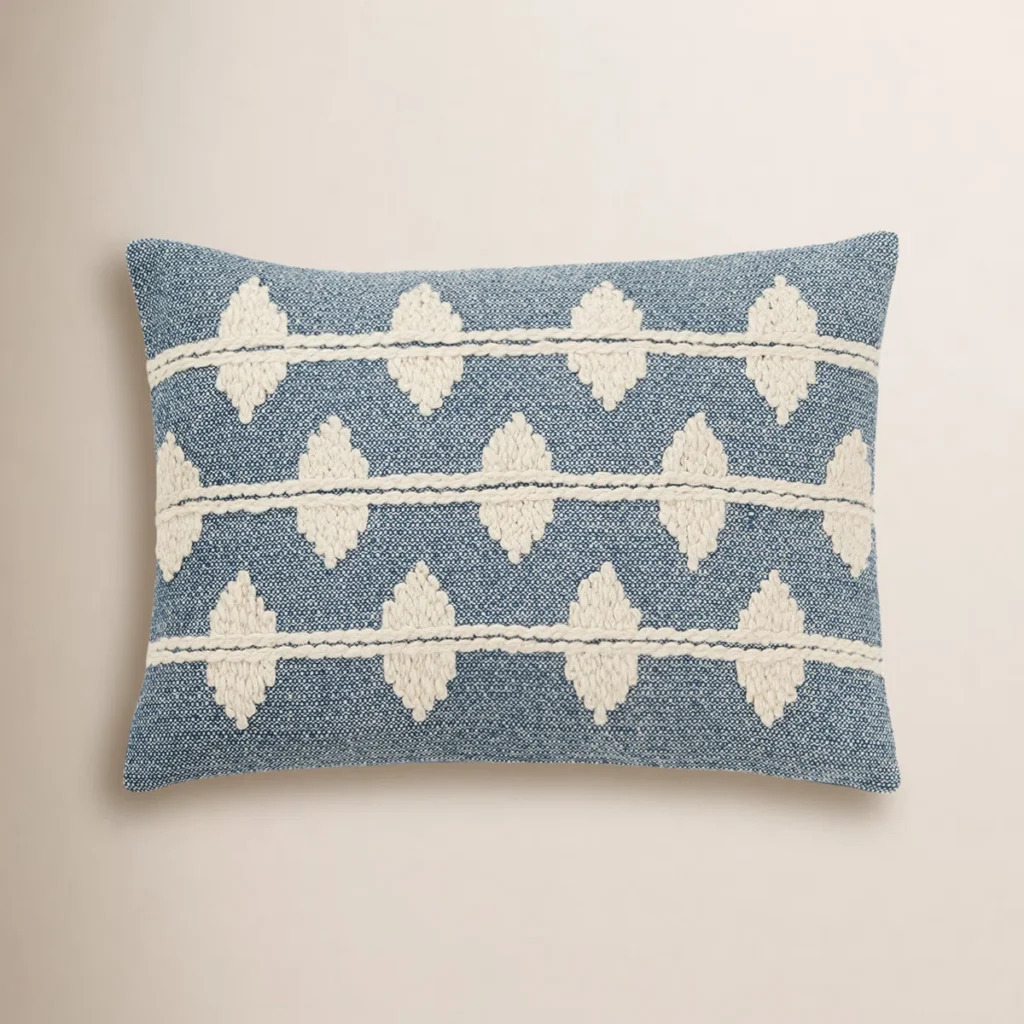 Drawing attention to edges through contrast piping or scalloped finishes is a great way to elevate design. Fabrics like velvet and silk add touches that are commensurate with Hollywood style to help refine the cottage look. This velvet pillow is a good option for adding luxury without becoming too stuffy.