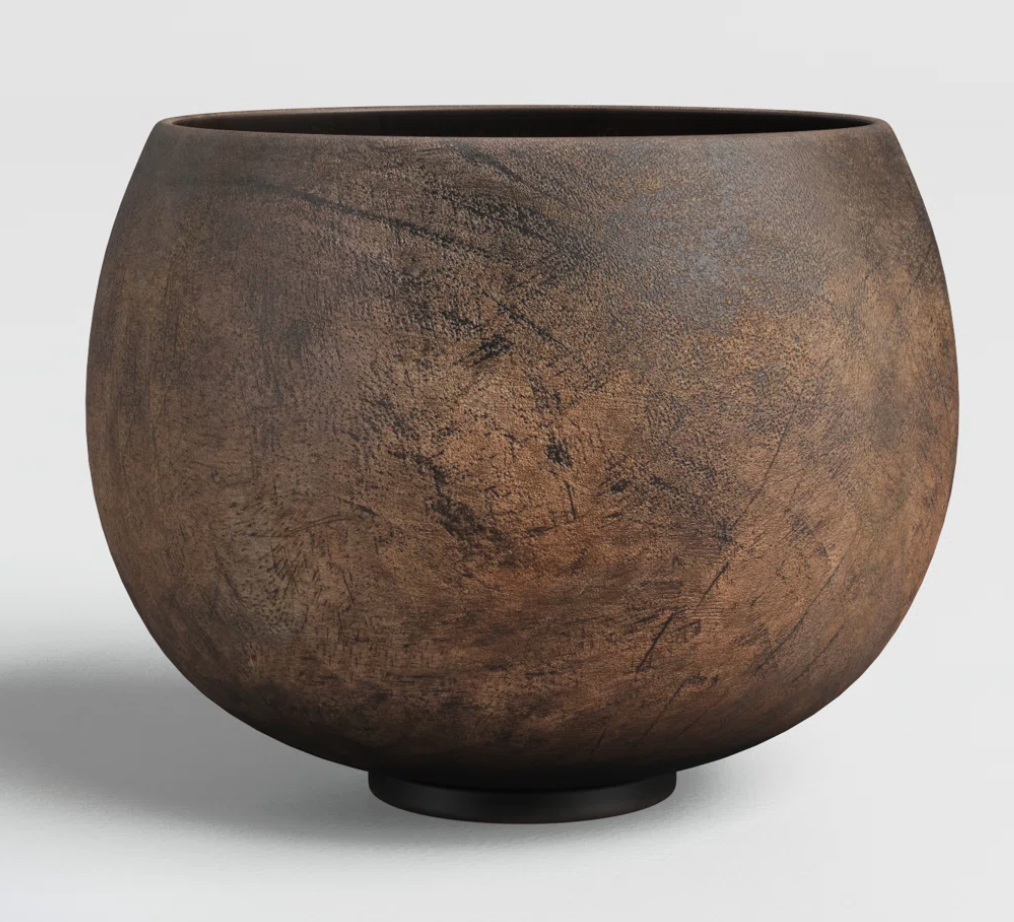 Wooden textures, pottery, and warm brass finishes add grounding and depth.