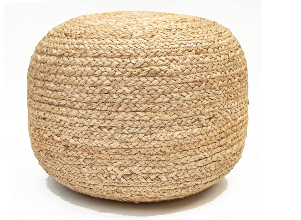 Cozy Textures – woven poofs and baskets along with chunky, knitted blankets