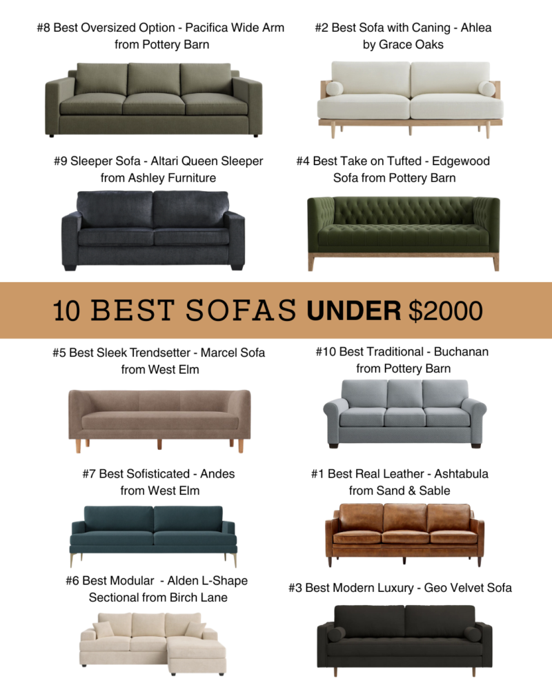 You can shop right from each product listed above to find your specific favorite, or you can click the link below to shop our top picks in one place. If you want the absolute gold standard for durability, we highly recommend starting with the Pottery Barn Buchanan. It’s the safest “buy it once” investment on this list. On the other hand, if you need maximum guest-ready value, the Ashley Altari Sleeper is a total win for under $1,000.