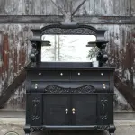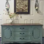 If you’d like to see how we paint furniture, check out our How to Paint Furniture post. We painted it black, lightly distressed all of the edges to show some of the wood and replaced all of the hardware.
