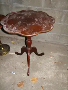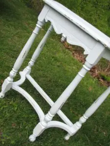 This small table had a crack in the bottom section that needed to be repaired and some of the joints were coming apart. We mended it and then painted it a light, light blue. We then distressed it and sealed it for quality.