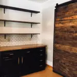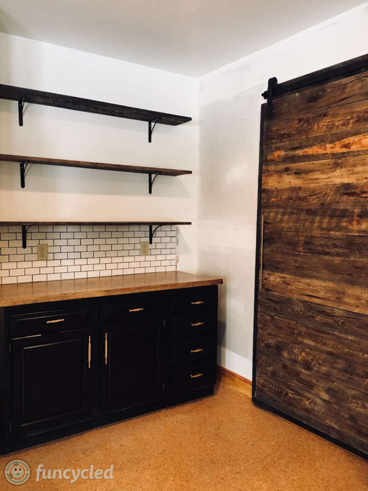 How are you? I hope your week is going well! Everything is going really well around here. I can’t take professional pictures of our most recent basement project until all of the accents are installed, but I wanted to share a sneak peak of some of the work we’ve done so far… we built a custom barn door, built a new wall, and added a kitchenette area.