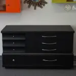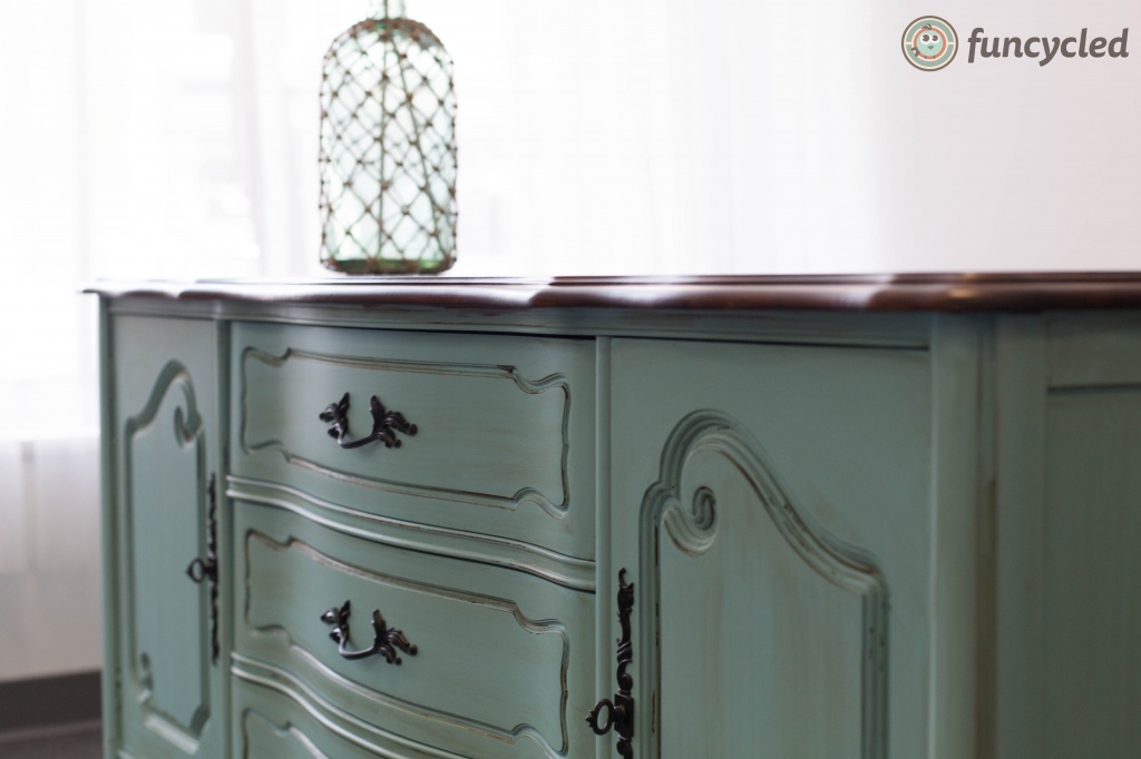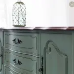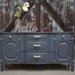 We painted it using the color Cracked Pepper by Behr and glazed it with Valspar’s Antiquing Glaze. If you’d like to see how we paint furniture, check out our How to Paint Furniture post. We lightly distressed all of the edges to show some of the wood and replaced all of the hardware as well.