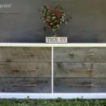 We painted it using the color Silver Fox by Benjamin Moore and added a protective clear coat over the top. If you’d like to see how we paint furniture, check out our How to Paint Furniture post. We also added new hardware!