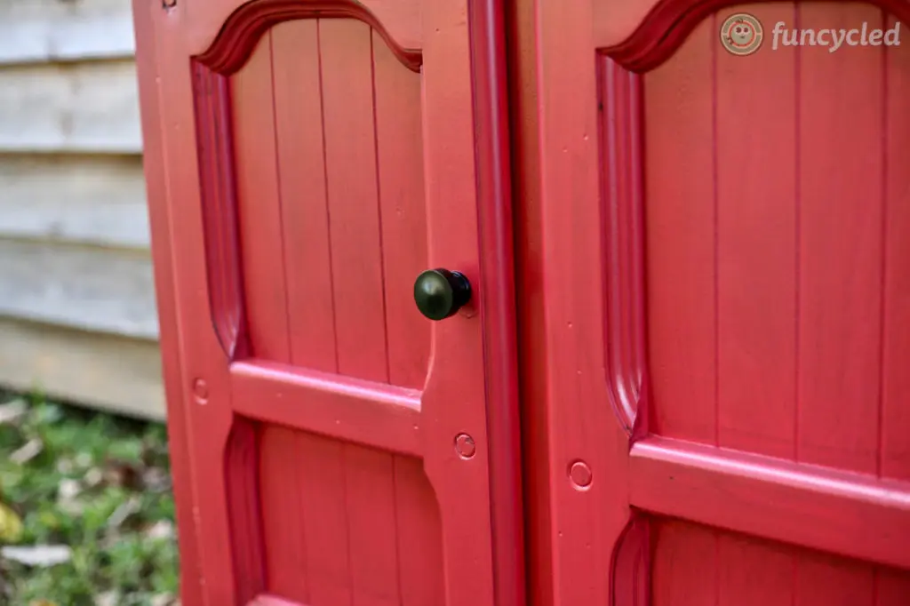 We painted it Benjamin Moore’s Heritage Red, glazed it, added new hardware, and sprayed it with a protective clear coat.