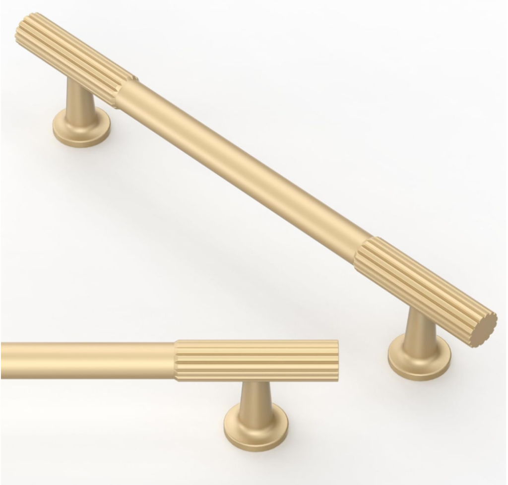 So one of the things that is NOT completely refined in this AI created kitchen inspo photo is the use of too many cabinet hardware styles. While I absolutely LOVE the ideas and overall concept depicted in our inspo pic, upon closer inspection, you will see that there are 4 different styles of hardware used throughout the kitchen. Sometimes this choice can work well within a certain design, but typically, using too many styles can cause your design to feel disjointed or busy, especially when you are trying to achieve a look that will stand the test of time. So you might be asking…what is the best rule for this?