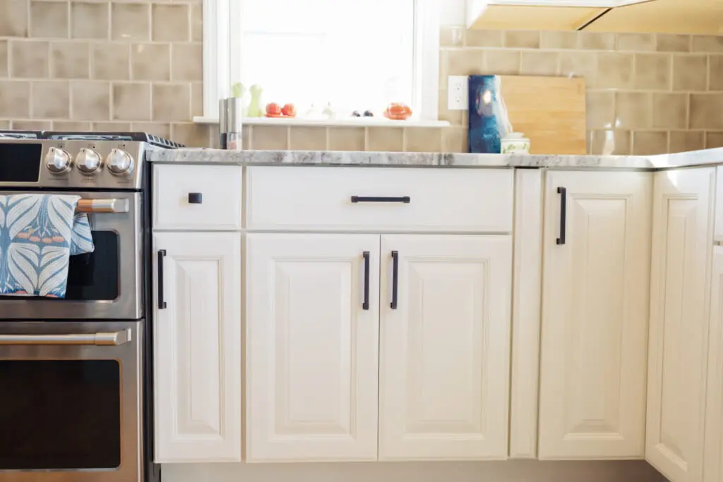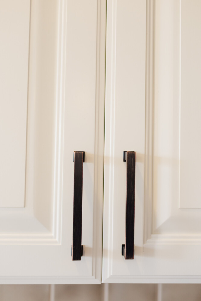 Design Pro Tip: To create a more elevated and seamless look, select hardware that mimics the profile of your cabinetry. For example, pairing a linear handle that has a squared off base with raised panel-style door reinforces the lines of the kitchen, making the entire design feel intentional and custom-built.