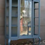 We painted the box with Benjamin Moore’s color Urban Bronze, glazed it and finished with a semi-gloss clear coat. For the drawers, we lightly sanded then stained them a light gray. I love the combination of both and using the original hardware kept the vintage feel I wanted this piece to have.