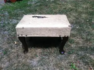 Here’s the chair before in all its white and ripped apart glory… or not. Mom found this piece and bought it.