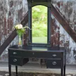 If you’d like to see how we paint furniture, check out our How to Paint Furniture post. We painted it with black enamel paint, distressed all of the edges to show some of the wood and replaced some of the hardware.