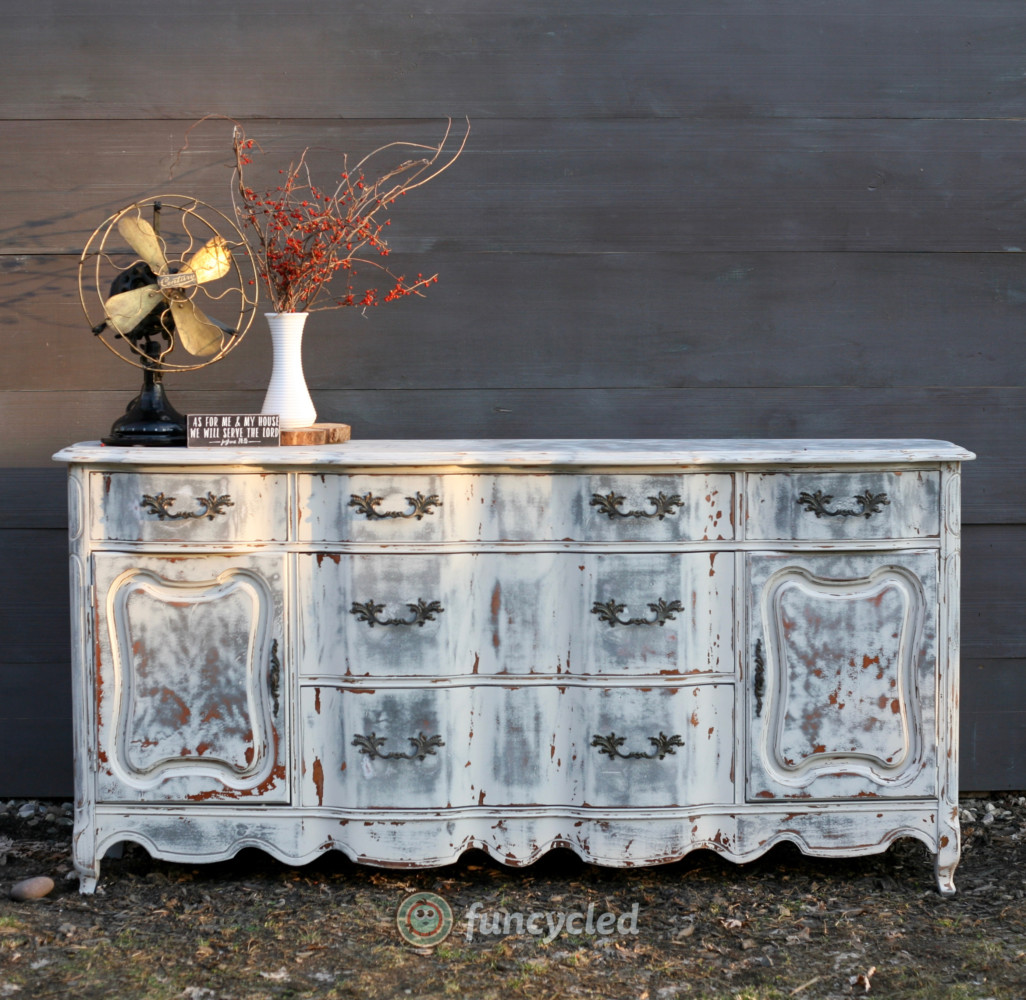 She reserved time on our schedule for the project and then we met to discuss the finish that she wanted. She brought a picture of a Pottery Barn dresser that she liked. She wanted slightly different colors, but with a finish that was a little less common than what we normally do. I’m always up for that challenge!