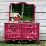 Then to take it to the next level of adorable – we added new hardware, painted it with black enamel, abd msprayed it with a protective clear coat. If you’d like to see how we paint furniture, check out our How to Paint Furniture post.