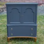 This is an important step! Clear coat the dresser with a Satin water based poly. It’s going to look too shiny with the enamel and won’t look good from the sanding if you don’t clear coat it.