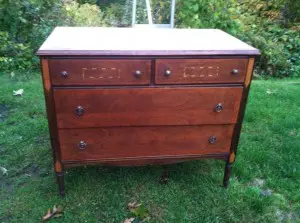 Happy Monday everyone! I thought I would surprise you this morning with another quick before and after. I bought this little dresser and loved the shape. We’ve done many dressers in this style, but for our customer, Pam, we were going to mix it up a bit. She had a small wall for her entertainment center and this dresser was the perfect size.