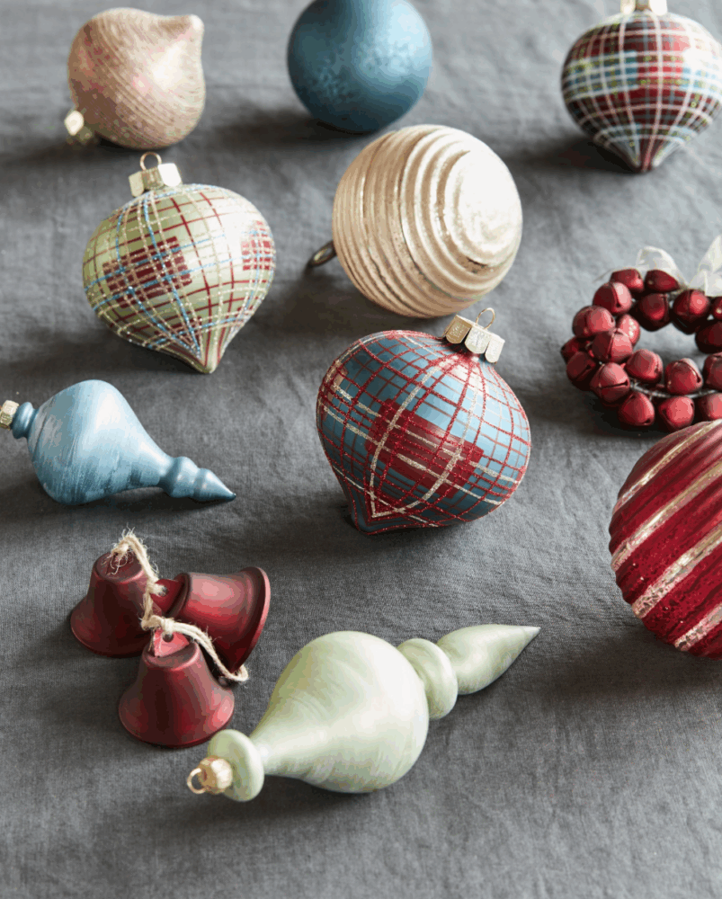 These vintage inspired ornaments mix shapes and styles reminiscent of former years while showcasing a more modern take on traditional colors and patterns.