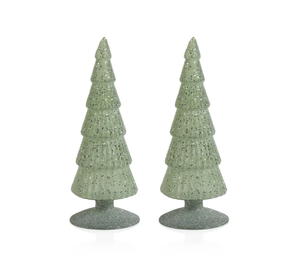 Lights are not the only way to add reflective touches to your your Christmas season. Glass trees in soft colors help add illumination throughout the room. Here are a couple of options: