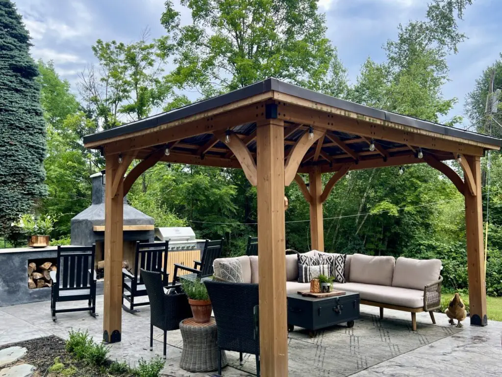 So we added a stamped concrete patio, gazebo, outdoor dining, and my husband, John, built an outdoor fireplace and kitchen area. He did such a fabulous job! I’m so impressed by what he can do without ever having done it before. Was it worth it?! Yes