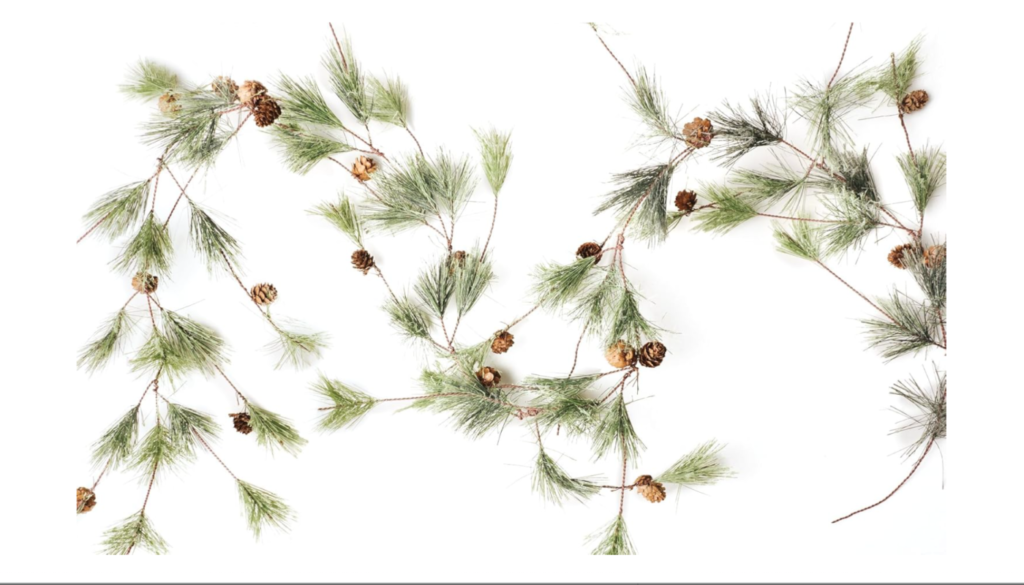 This year, we are seeing garland, garland, garland, everywhere garland. From evergreens, to pine-cones, to ribbons (also another trend), to beads and tinsel. Below are some quality pine garlands that could be used on a railing, a mantle, or incorporated into your table decor.