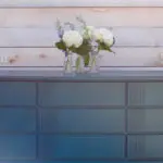 We painted the outside with a dark gray first and then Benjamin Moore’s color Simply White. After it was dry, we heavily distressed it by using an orbital sander. All new hardware was a must, too!  If you want to see how we paint furniture, check out our How to Paint Furniture post.